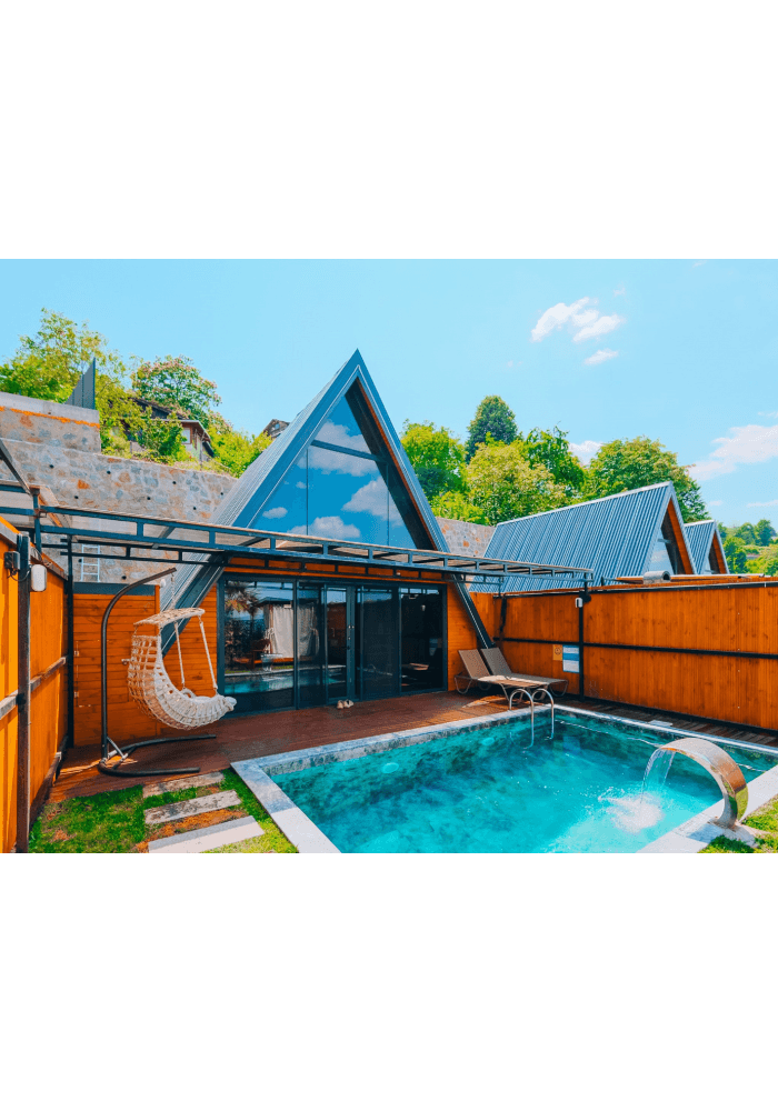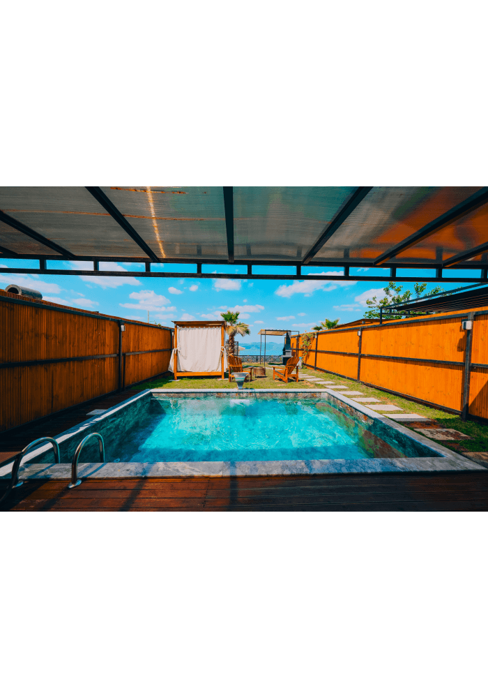 Havuzlar 5x3 metre ebatında 1,50 metre derinlikte ısıtmalı ve çevreden görülmeyecek şekilde korunaklıdır.